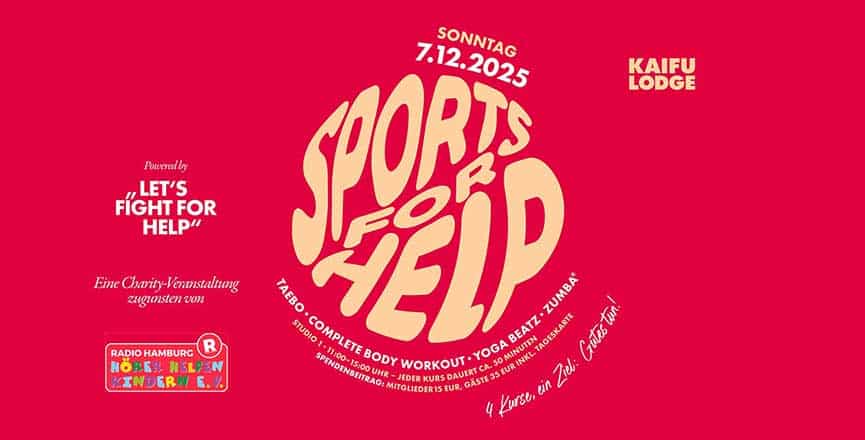 Seit 2011 sammeln die Sportsfreunde mit der „Let´s fight for help“-Aktion jedes Jahr Tausende Euros für den guten Zweck. Auch dieses Jahr ist es wieder soweit. Am Sonntag, den 07.12.2025, wird von 11 bis 15 Uhr Non-Stop geschwitzt und gespendet. Jeder gesammelte Euro geht an „Hörer helfen Kindern“. Mitglieder zahlen für die Session 15 Euro und externe Gäste 35 Euro. Die Bezahlung erfolgt am Veranstaltungstag vor Ort oder via PayPal an charity@kaifu-lodge.de. Eine vorherige Anmeldung ist nicht notwendig.