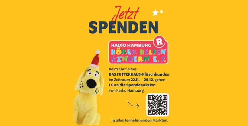 Die Aktion läuft vom 22.11. bis 20.12. in 30 Futterhaus-Filialen in und um Hamburg. Pro verkauftem Hund geht automatisch 1 Euro an Kinder und Jugendliche in Not. Jeder Kauf des süßen Hundes tut also direkt Gutes. Also schaut mal vorbei und nehmt doch dieses süße Geschenk einmal mit.