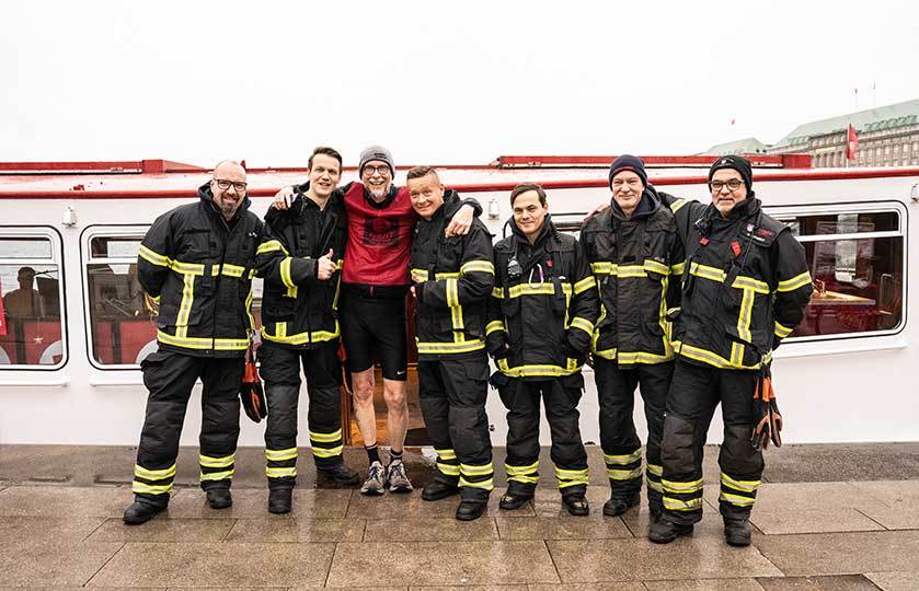 Die Kolleginnen und Kollegen der Feuer- und Rettungswache Innenstadt F11 haben privat gespendet. Sie haben zusammengelegt und uns 1.111 Euro mitgebracht!!! Und zwar kamen sie im Feuerwehrwagen direkt zum Alsterschiff.
