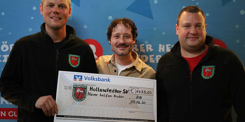 Der Schützenverein aus Hollenstedt hat Radio Hamburg besucht und ihre Spende in Höhe von 1.435,50 Euro vorbeigebracht. Sie haben in ihrem Schützenhaus ein Benefizkonzert veranstaltet und die Eintrittsgelder an Hörer helfen Kindern gespendet.