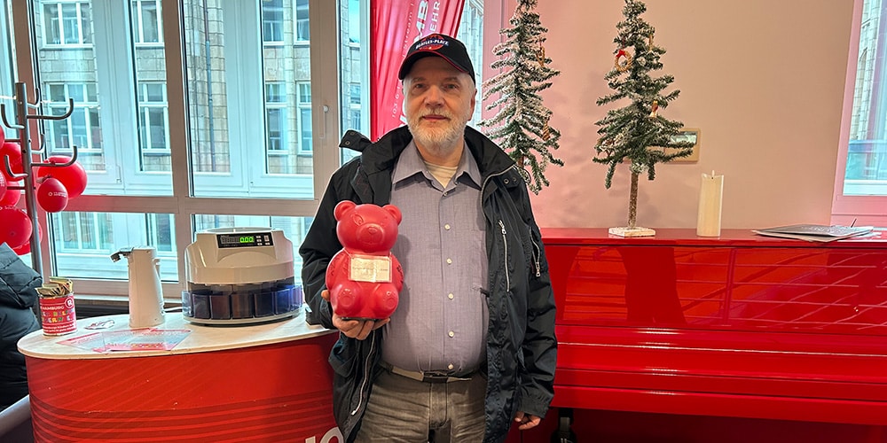 Auch Thorsten Brandt war zum wiederholten Male (das 23. Mal!!!!) bei uns im Sender zu Besuch und hat eine Spende von 444€ vorbeigebracht – das Geld befand sich in einer Spendendose in Form eines Bären. Er arbeitet bei P. Loppow & Sohn (Heizung und Sanitärtechnik), dort wurde im Team gesammelt und Kunden haben ebenso gespendet.