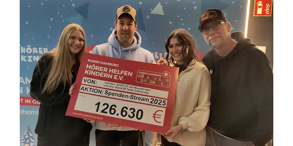 Die Spendenaktion der drei YouTuber und Streamer aus der World of Tanks Spieler Gemeinde ging nach 2024 in die zweite Runde für Hörer helfen Kindern! Dakillzor aus Belgien, Skill4LTU aus Litauen und der Hamburger Andreas Gutzeit aka MouzAkrobat starteten im Dezember erneut ein gemeinsames Charity Projekt, das sich für Kinder einsetzt und spielten gemeinsam das Strategiespiel "World of Tanks". Dabei sind unfassbare 126.630 Euro gesammelt worden. Uns fehlen da schlichtweg die Worte und wir sagen im Namen aller Kids und Familien: DANKE!