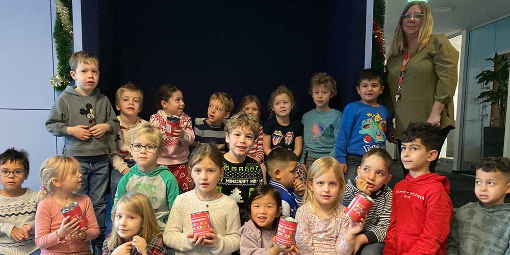Die Vorschulklasse B der Schule Grützmühlenweg hat zusammen mit Lehrerin Daniela Kaiser ebenfalls eine tolle Spende vorbeigebracht. Die Kinder haben bei zwei Aufführungen, (15.10.25 und 12.12.25) ein Musikprogramm und ein Theaterstück (Sterntaler) mit zwei Spendendosen gesammelt. So sind 148 Euro für Kinder in Not gesammelt worden.